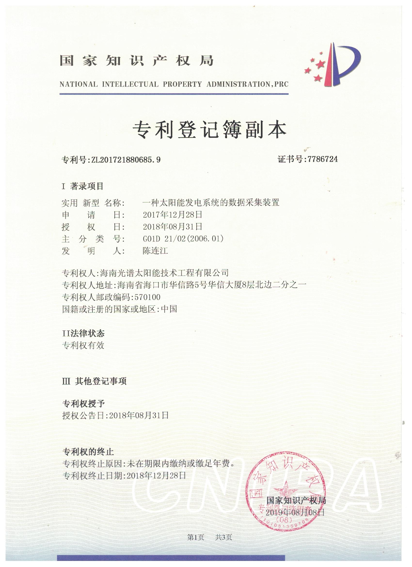 近日,我司申報的“一種太陽能熱泵蒸汽發生裝置”發明專利通過審查,獲得國家知識產權局授予的發明專利證書,授權專利號為“ZL201911126309.4”。 此次獲得國家頒發的專利證書,是對海南光譜公司創新實力的認可,代表著我司知識產權取得了突破性進展,為公司的持續性發展提供強有力的科技創...